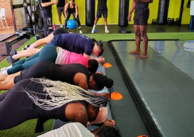 It’s not about fighting others — it’s about fighting self-doubt and fear and overcoming it with every step forward, no matter how small. Every session is a victory over yesterday’s version of you. The name evokes resilience. Whether beginner or advanced, you step into the arena to reclaim your power. We sweat together, push together and celebrate every win together. BoxFit BattleGround is where camaraderie is forged through shared struggle. So, what are you waiting for?